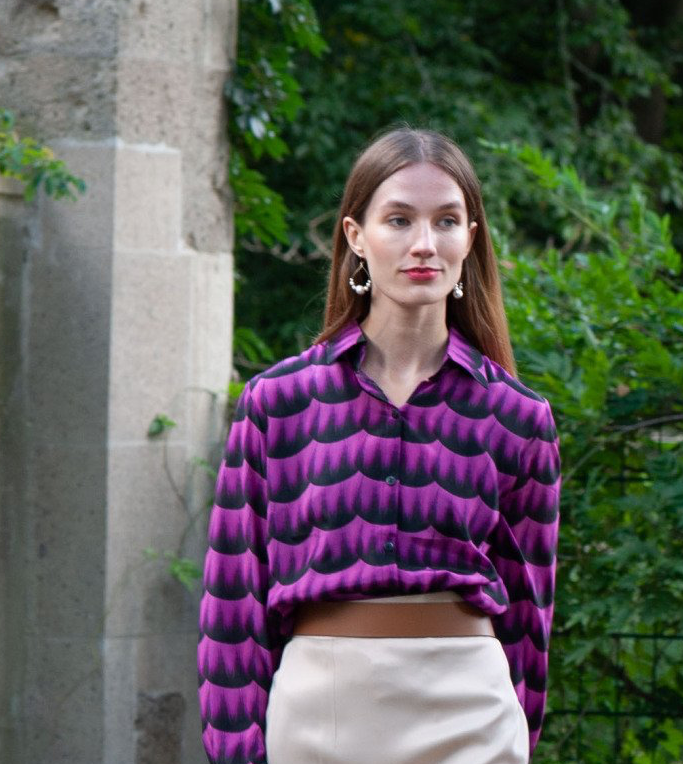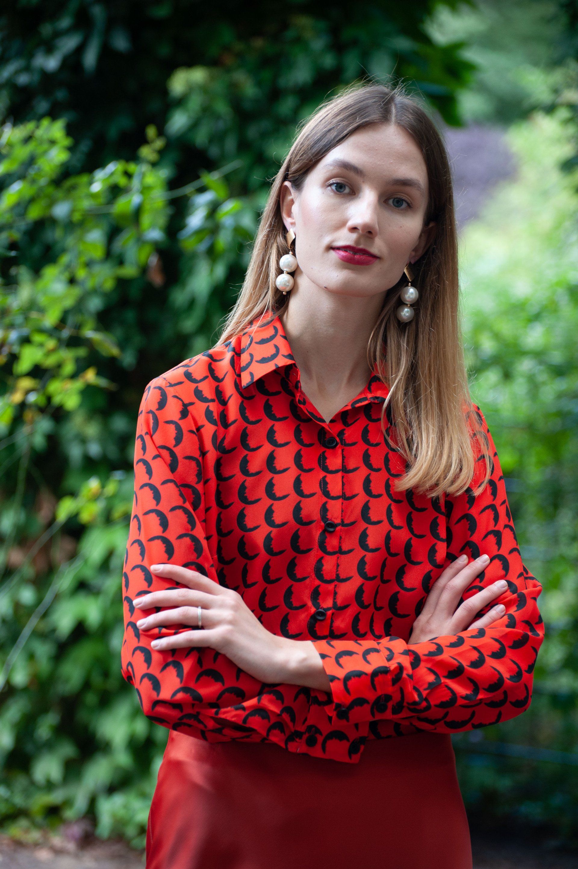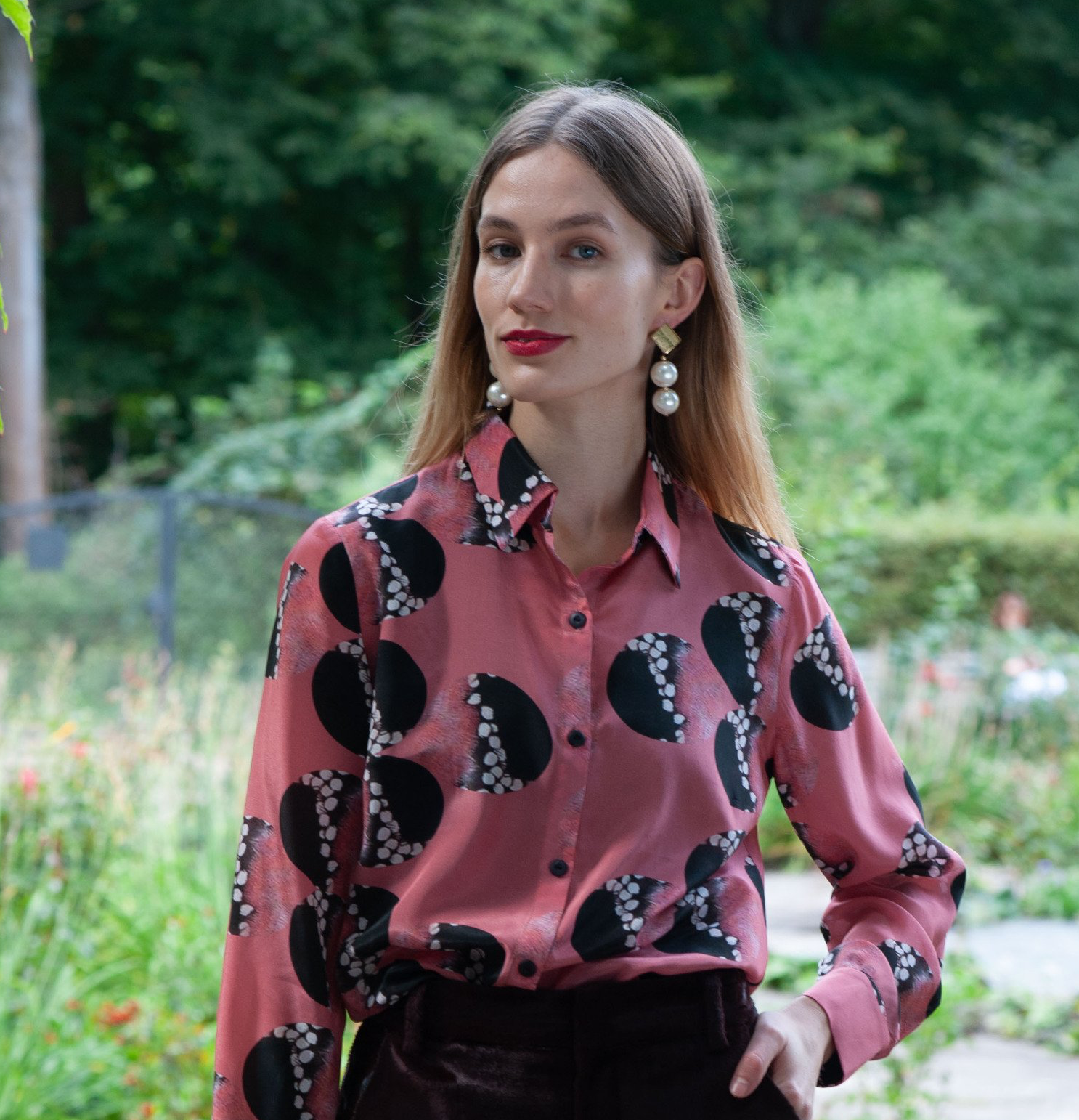 Die Blusen sind aus leichtem Seidensatin, haben eine lockere Passform und können mit Hosen oder Röcken für einen mühelosen und schicken Auftritt kombiniert werden.